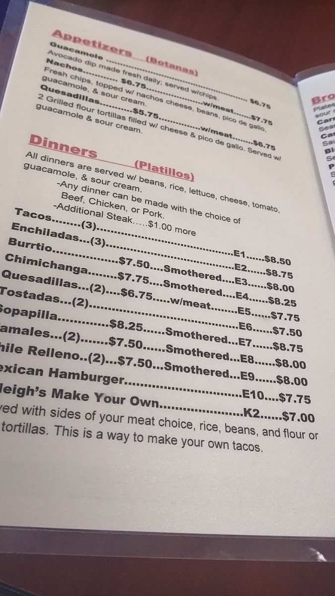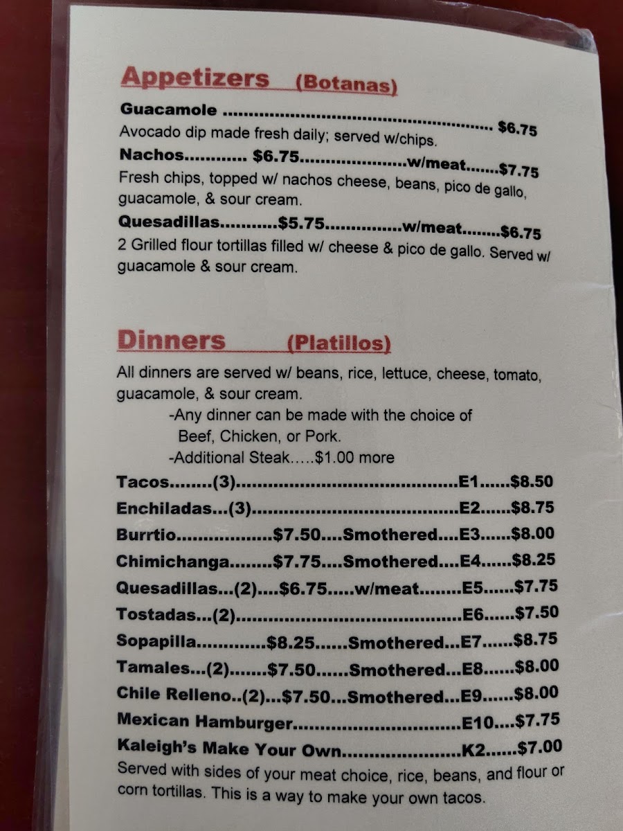 Fajitas Mexican Restaurant Menu
